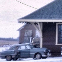 Vernon River 1967. Photographer unknown. It looks like the door is removed at this point; too bad the car is in the way. The proportions of the removed door seem correct for it to be resting on the ground right where the car’s roof is. That would indicate that the earth is built up to the foundation’s top.