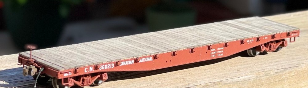In my last update, I mentioned that my scratch-build of one of CN’s 1929 built “Group C” flat cars was drawing to a close. I am happy to report it is indeed now complete, sans a retainer valve. As I could never discern the valve’s location on the prototype, my thoughts were that it would be better to leave the part off the model entirely rather than guess and find out later it was put in the wrong location.